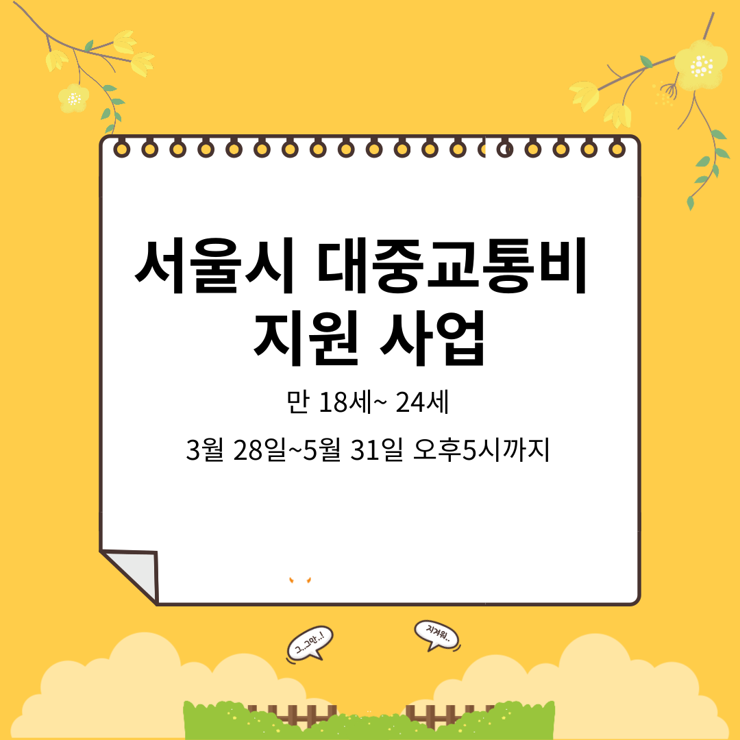 서울에 거주하는 만19~ 24세 청년들을 대상으로 대중 교통비를 최대 10만원 지원합니다. 15만명 선착순 지급을 한다고 하오니, 바로 교통비 지원 신청하세요~~ 서울시가 사회에 초년생인 청년들의 경제적 부담을 덜어주기 위해 대중 교통비 지원 사업을 실시합니다. 만 19~24세 대상(1998년 1월 1일 ~ 2004년 12월 31일) 대중교통 이용요금의 20% 연 최대 10만 원을 교통마일리지로 지급 3월 28일 오전 10시~ 5월 31일 오후 5시까지 신청 거주지: 신청일 기준, 주민등록상 서울시 거주 서울 청년 대중 교통비 지원 신청 방법 교통비 지원 신청 하기 위해서는 온라인 청년몽땅정보통 홈페이지에서만 가능합니다. 하기 홈페이지에서 조건을 꼭 확인하세요! 1) 서울시 청년 대중 교통비 신청하러 가..