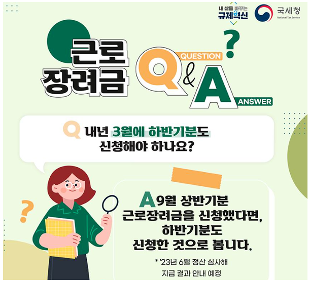 상반기 소득: 2023년 1월~6월 근로소득에 대한 신청으로 9월 1일 ~ 9월 15일입니다.