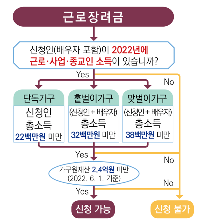 올해는 재산 조건 완화 및 근로 장려금 최대 지원금액이 늘어나 신청 자격요건을 꼭 확인 하시기 바랍니다.