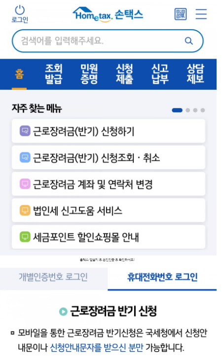 2. 홈텍스 앱 (모바일에서 손텍스 앱 다운로드)